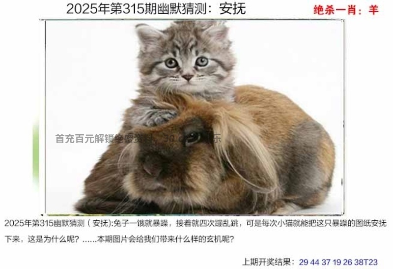 兔子一饿就暴躁,接着就四次蹦乱跳,可是每次小猫就能把这只暴躁的图纸安抚下来,这是为什么呢?...本期图片会给我们带来什么样的玄机呢?